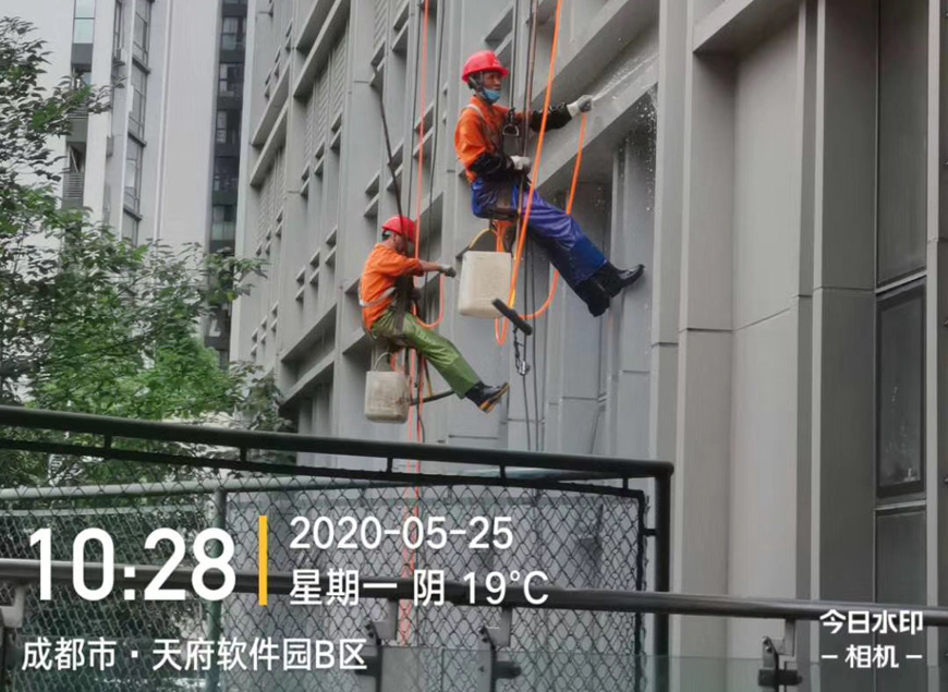 成都潔爾亮清潔對B區大樓外墻清洗服務。
