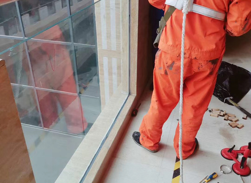 玻璃更換,專業工具、專業潔爾亮師傅對碎了的玻璃檔進行更換。